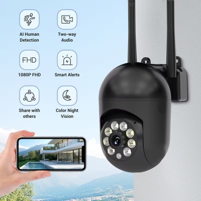 покрытие > бытовая техника > Местный складНаружная камера безопасности с разрешением 1080p с PTZ (панорамирование/наклон/зум 355°), полноцветное ночное видение, двусторонняя аудиосвязь, защита IP54, совместимость с приложением Ease Life - для домашнего и коммерческого наблюдения (для владельцев недвижимости)