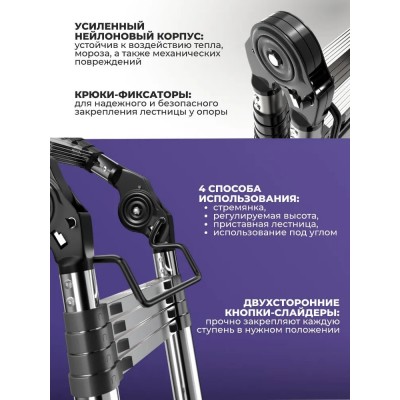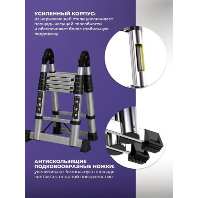 Лестница 2.5 метра-нержавеющая сталь, телескопическая;Многофункциональная лестница;стремянка