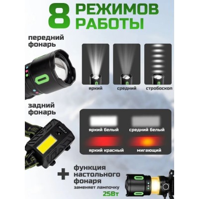 Мощный налобный фонарь светодиодный, аккумуляторный