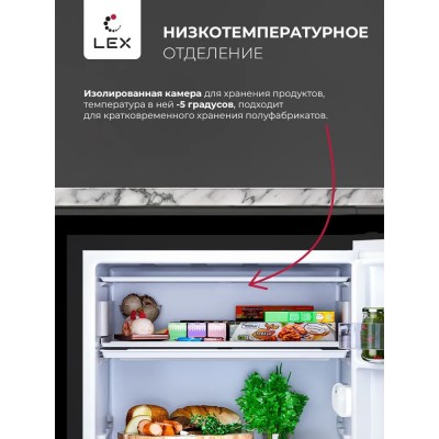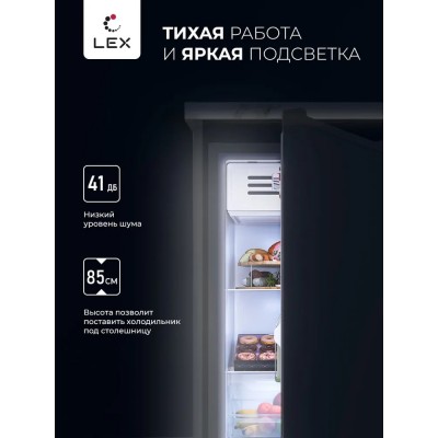 покрытие > бытовая техника > Холодильник отдельностоящий для дома, офиса и дачи, LEX LSD100BL, полезный объем 83л, полки из закаленного стекла, низкотемпературная камера, Defrost,цвет черный