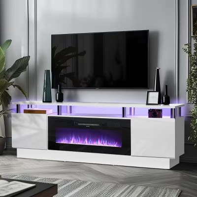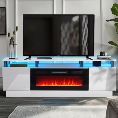 покрытие > бытовая техника > Местный складТВ-консоль с электрической плитой 36 дюймов, развлекательный центр со светодиодной подсветкой, двухъярусная консольная подставка для ТВ до 80 дюймов, консоль для гостиной, (белый/черный)
