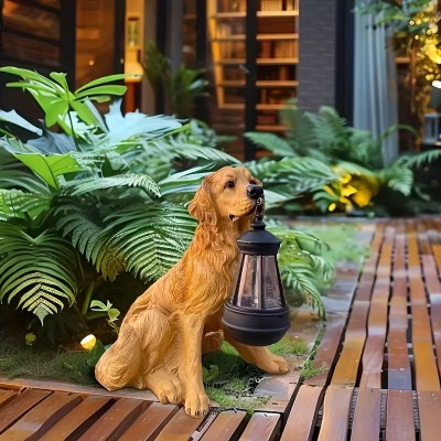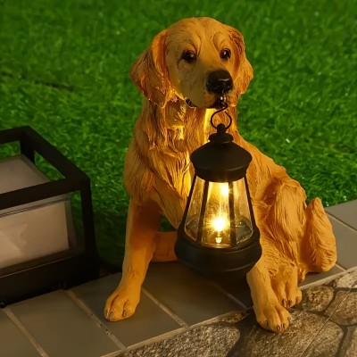 покрытие > Статуэтка золотистого ретривера на солнечных батареях со светодиодной подсветкой - идеальное сочетание очарования и функциональности, можно использовать как украшение для сада и газона, подарок для любителей домашних животных, прочный декор.Водонепроницаемые уличные светильники на солнечных батареях.Рождественские украшения