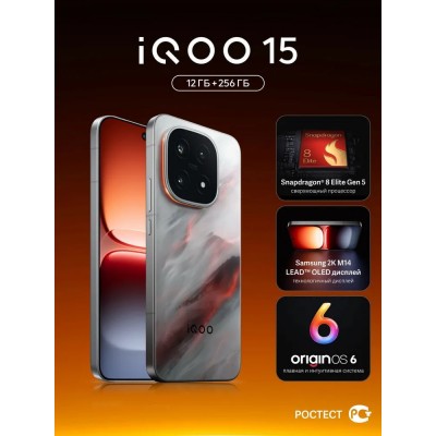 покрытие > Электроника > Телефоны и смарт-часы > iQOO Смартфон iQOO 15 Ростест (EAC) 12/256 ГБ, серый