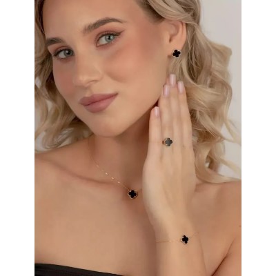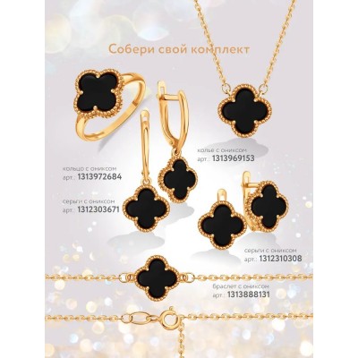 покрытие > Одежда и аксессуары > другие > Серьги золотые 585 пробы с ониксом в форме клевера, KARATOV