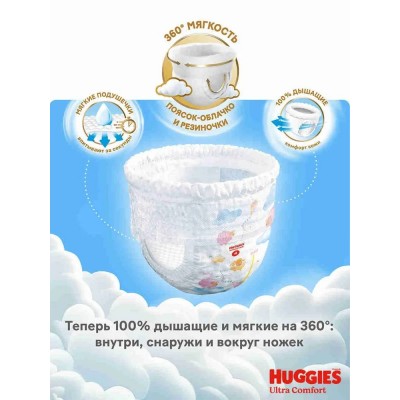 покрытие > Детские товары > Подгузники трусики детские Huggies Ultra Comfort размер 4 L (9-14 кг) 92 шт, для девочек